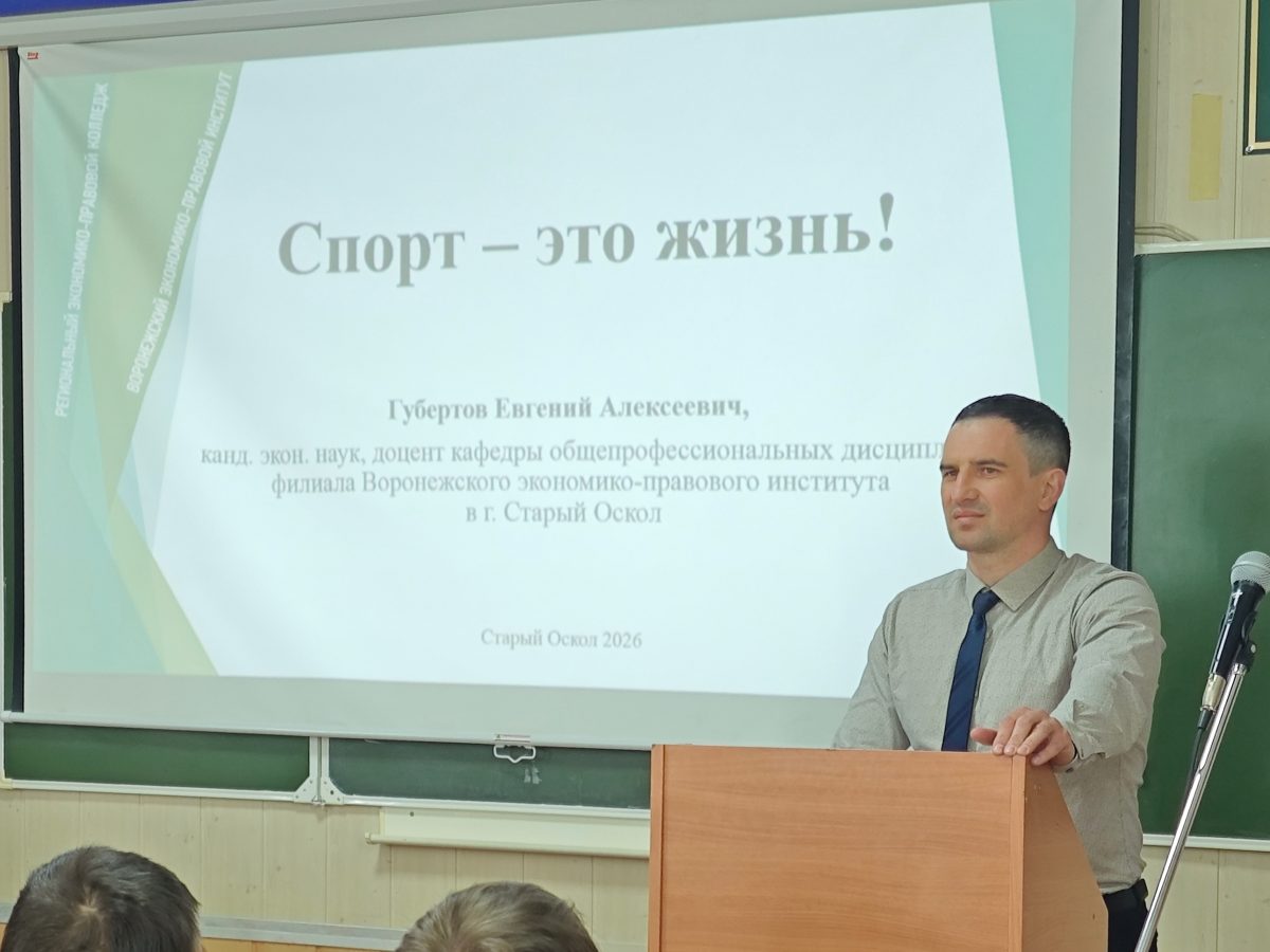 7 апреля для студентов филиала АНПОО «РЭПК» в г. Старый Оскол прошло мероприятие под говорящим названием «Спорт — это жизнь!». Главным спикером выступил преподаватель Губертов Евгений Алексеевич, который не понаслышке знает, что значит дружить со спортом с ранних лет.
